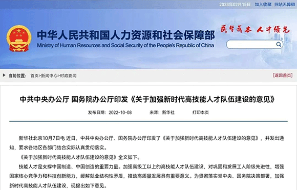 全面贯彻落实《关于加强新时代高技能人才队伍建设的意见》,推进技能中国行动。